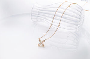やわらかな輝きを放つピンクゴールドに、繊細なダイヤモンドをあしらったネックレス。